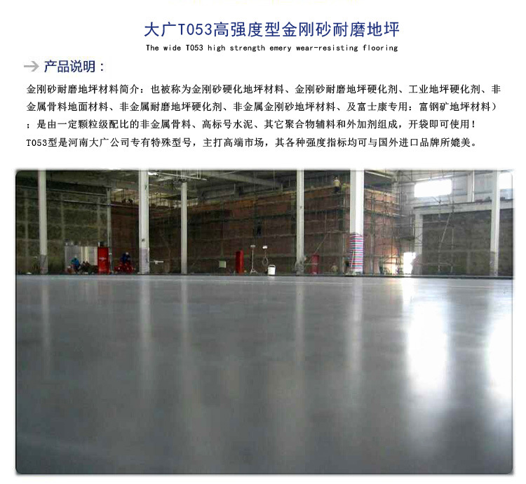 河南大廣:T053高強度型地坪 金剛砂耐磨地坪材料廠商 非金屬硬化地面施工廠家
